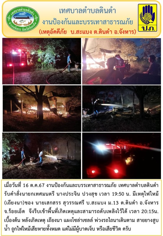 เหตุไฟไหม้เถียงนา นายเสกสรร สุวรรณศรี ม.11 บ้านสะแบง ตำบลดินดำ