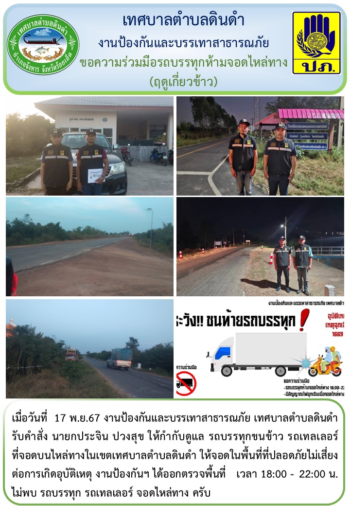 ขอความร่วมมือรถบรรทุก ห้ามจอดไหล่ทางฤดูเกี่ยวข้าว