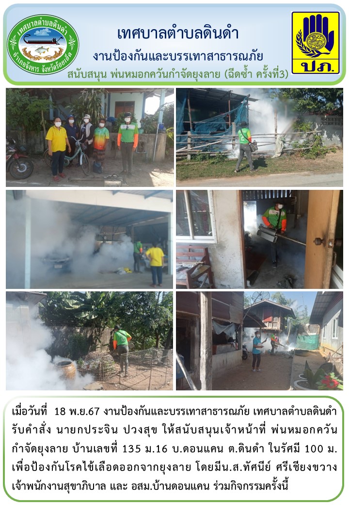 สนับสนุนนำเจ้าหน้าที่ป้องกันฯ พ่นหมอกควันกำจัดยุงลาย ในบริเวรบ้านผู้ป่วยไข้เลือดออก