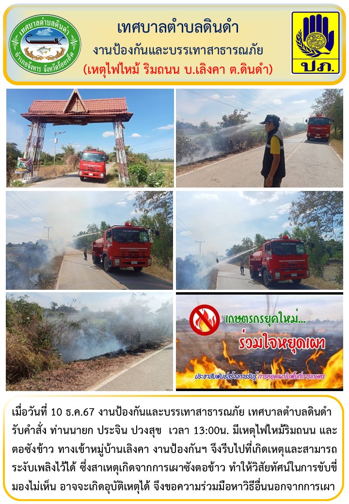 ระงับเหตุไฟไหม้ริมถนน บ.เลิงคา ต.ดินดำ อ.จังหาร จ.ร้อยเอ็ด