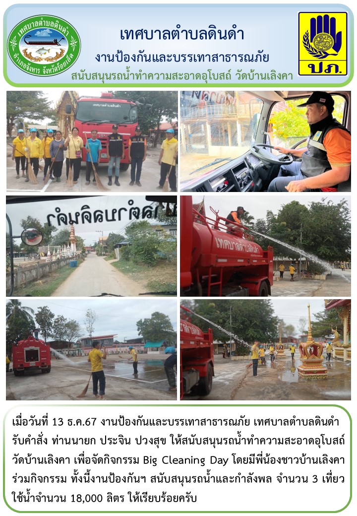 สนับสนุนรถน้ำอเนกประสงค์ล้างทำความสะอาดอุโบสถ์ บ.เลิงคา ต.ดินดำ