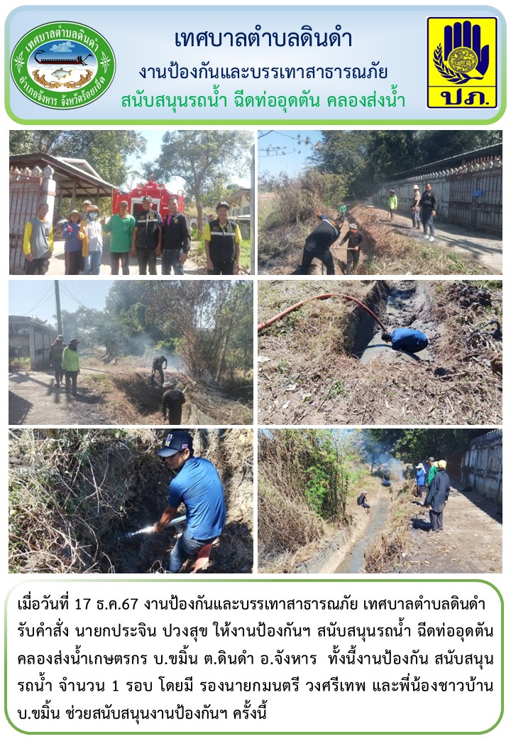 เมื่อวันที่ 17 ธ.ค.67 งานป้องกันและบรรเทาสาธารณภัย เทศบาลตำบลดินดำ