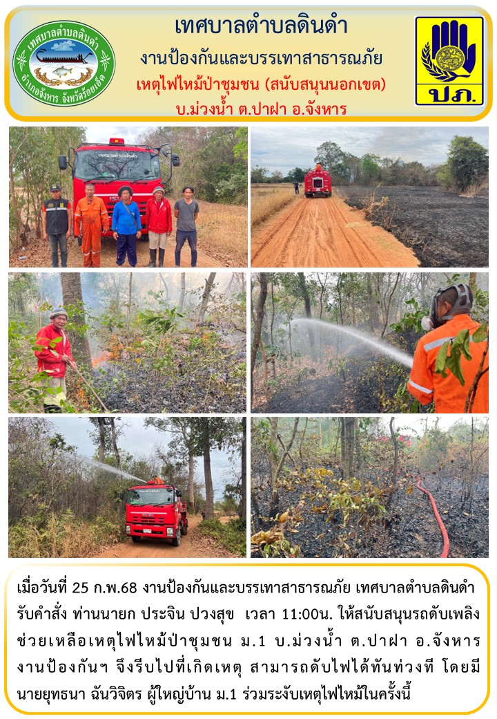 เมื่อวันที่ 25 ก.พ.68 งานป้องกันและบรรเทาสาธารณภัย เทศบาลตำบลดินดำ