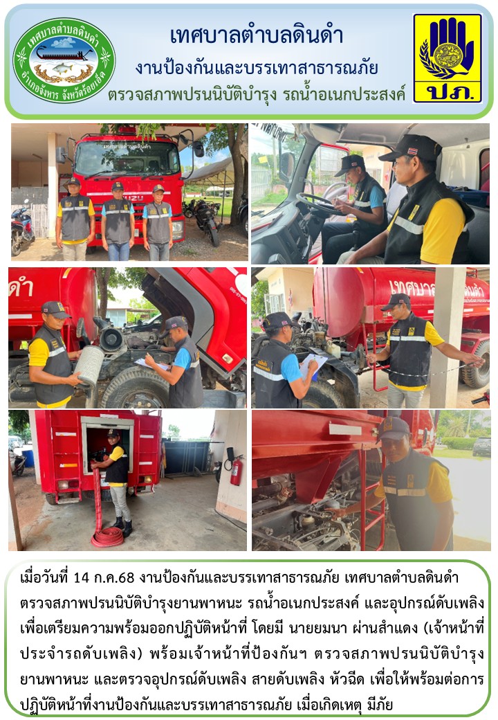เมื่อวันที่ 14 ก.ค.68 งานป้องกันและบรรเทาสาธารณภัย เทศบาลตำบลดินดำ