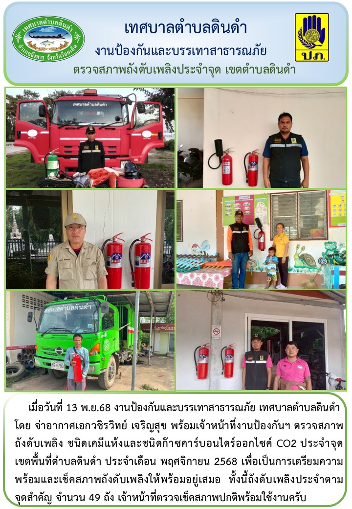 หัวข้อ :: ตรวจสภาพ ถังดับเพลิงประจำจุดเขตพื้นที่ตำบลดินดำ ประจำเดือน พฤศจิกายน 2568