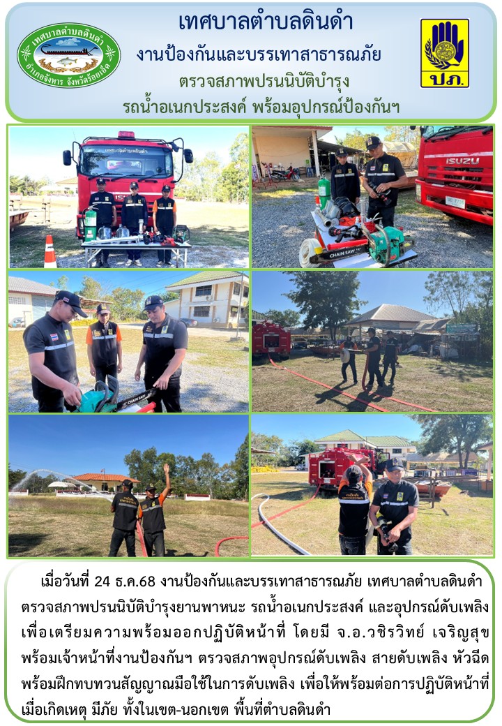 เมื่อวันที่ 24 ธ.ค.68 งานป้องกันและบรรเทาสาธารณภัย เทศบาลตำบลดินดำ
