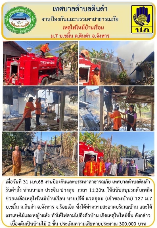 วันที่ 31 มกราคม 2568 งานป้องกันและบรรเทาสาธารณะภัย เทศบาลตำบลดินดำ