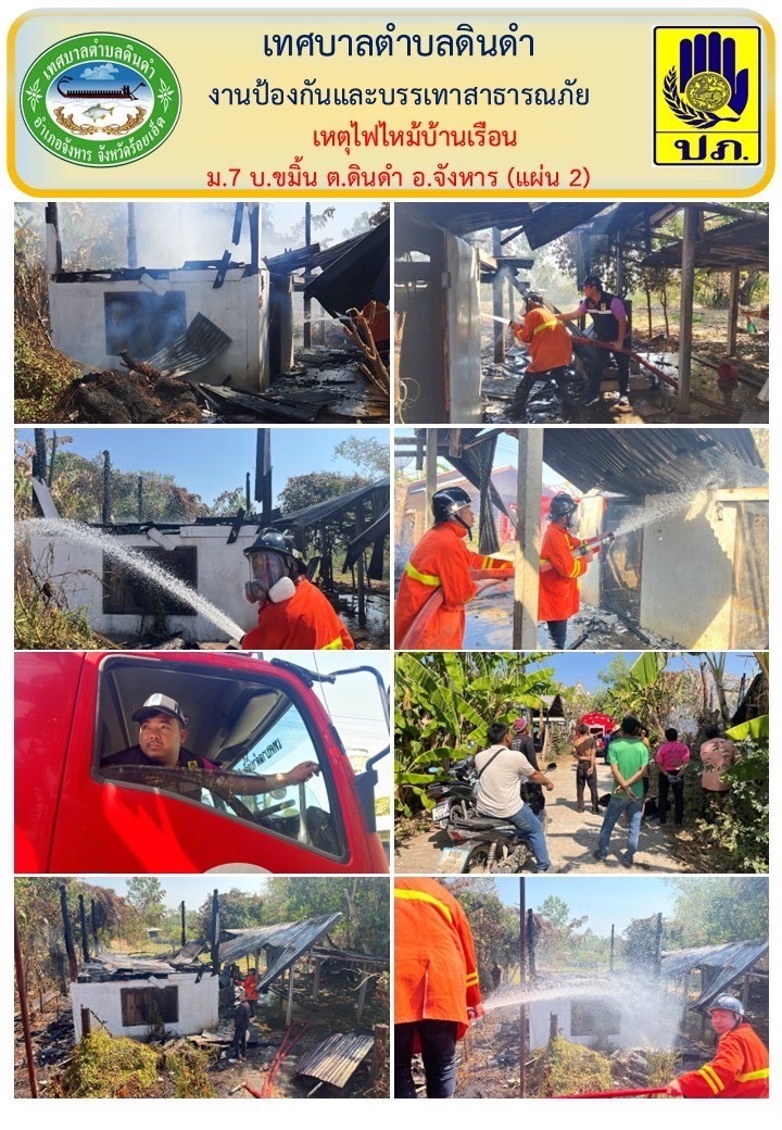 นายปรีดี แวดอุดม (เจ้าบ้าน) บ้านเลขที่ 127 หมู่ที่ 7 บ้านขมิ้น ตำบลดินดำ อำเภอจังหาร จังหวัดร้อยเอ็ด ซี่งได้ทำความสะอาดบริเวณบ้านและได้เผาเศษไม้และเศษหญ้าแห้ง ทำให้ไฟลามไปถึงตัวบ้าน เกิดไฟไหม้ขึ้น เบื้องต้นเป็นบ้านไม้ 2 ชั้น ประเมินความเสียหายประมาณ 300,000 บาท