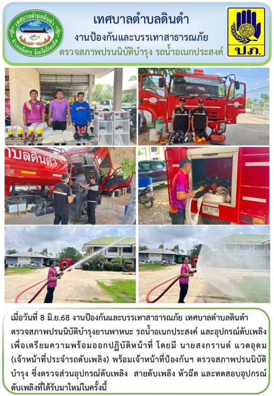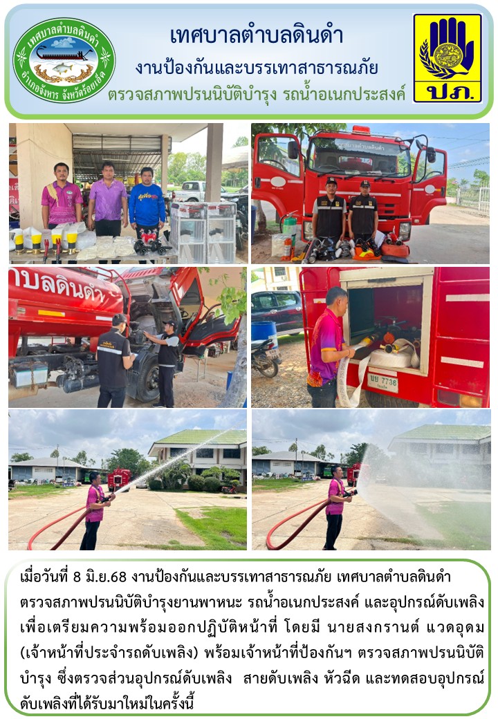 เมื่อวันที่ 8 มิ.ย.68 งานป้องกันและบรรเทาสาธารณภัย เทศบาลตำบลดินดำ