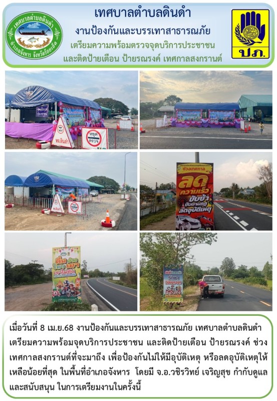 หัวข้อ :: เตรียมความพร้อมจุดบริการประชาชน และติดป้ายเตือน ป้ายรณรงค์ ช่วงเทศกาลสงกรานต์ 2568
