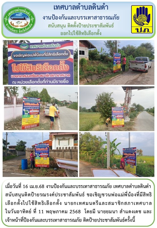 หัวข้อ :: ผู้นำชุมชนหมู่บ้าน สมาชิก อปพร.เทศบาลตำบลดินดำ ตั้งจุดบริการประชาชน ช่วงเทศกาลสงกรานต์ ณ.ตลาดบ้านดินดำ