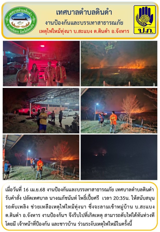 เมื่อวันที่ 16 เม.ย.68 งานป้องกันและบรรเทาสาธารณภัย เทศบาลตำบลดินดำ