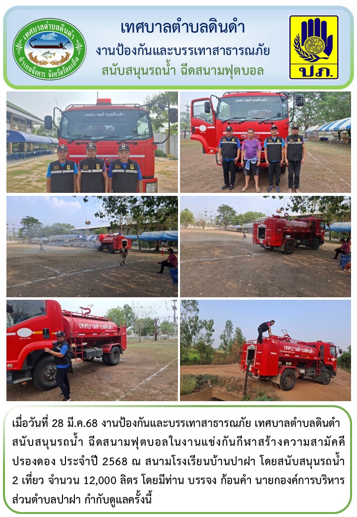หัวข้อ :: สนับสนุนรถน้ำ ฉีดสนามฟุตบอลในงานแข่งกันกีฬาสร้างความสามัคคีปรองดอง ประจำปี 2568 ณ สนามโรงเรียนบ้านปาฝา