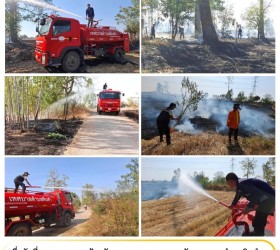 สนับสนุนรถน้ำดับเพลิงช่วยเหลือไฟไหม้หญ้า ใกล้หม้อแปลงสถานีสูบน้ำบ้านดินดำ ตำบลดินดำ อำเภอจังหาร จังหวัดร้อยเอ็ด