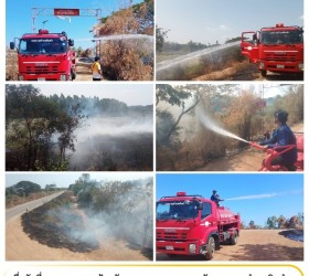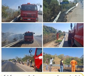สนับสนุนรถดับเพลิง ช่วยเหลือเหตุไฟไหม้หญ้าริมถนน ทางเข้าหมู่บ้าน ม.9 บ.บึงโดน ต.แสนชาติ อ.จังหาร จ.ร้อยเอ็ด