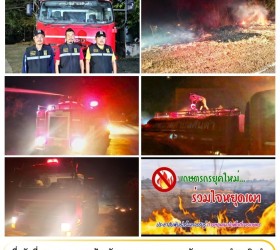 สนับสนุนเหตุไฟไหม้หญ้าริมถนนลามเข้า วัดป่าบ้านแซงแหลม ต.แสนชาติ อ.จังหาร จ.ร้อยเอ็ด