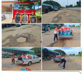 สนับสนุนนำเจ้าหน้าที่งานป้องกันฯ ลงหินคลุกเพื่อกลบหลุม หน้าตลาด บ.ดินดำ ต.ดินดำ