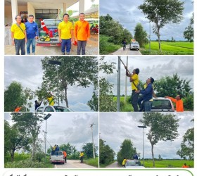 นำเจ้าหน้าที่งานป้องกันฯ ซ่อมแซม ตรวจสอบ ระบบแสงสว่างนอกตัวอาคารเทศบาลตำบลดินดำ