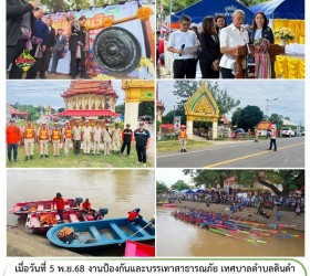 ฝึกซ้อมขับเรือท้องแบน เพื่อเตรียมความพร้อมรักษาความปลอดภัยทางน้ำ ให้กับงานประเพณีแข่งเรือเทศบาลตำบลดินดำ