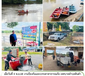 เตรียมความพร้อมอุปกรณ์ช่วยชีวิตคนจมน้ำและเรือท้องแบน เพื่อเตรียมความพร้อมรักษาความปลอดภัยทางในงานประเพณีแข่งเรือเทศบาลตำบลดินดำที่จะจัดขึ้นในวันที่ 5 พฤศจิกายน 2568 ณ.วัดบ้านดินดำ
