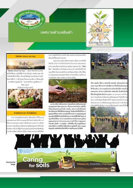 วันดินโลก Caring for soils : measure,monitor,manage ใส่ใจมาตรฐาน ตรวจวัดจัดการ ดินดียั่งยืน