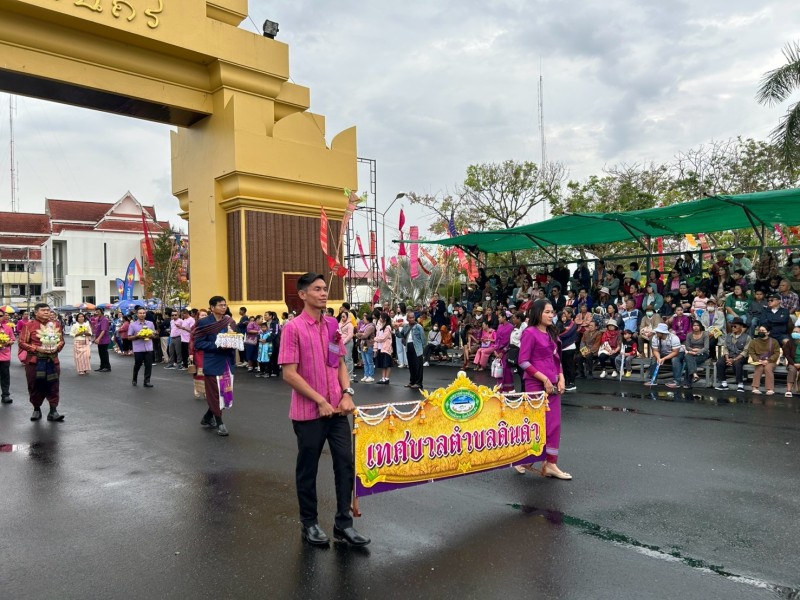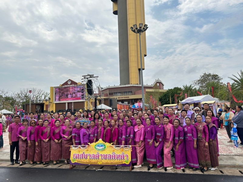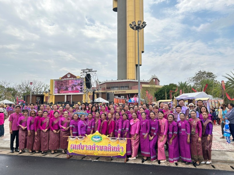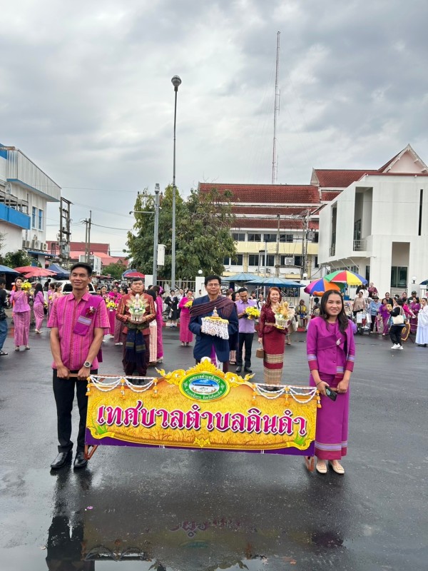 วันเสารที่ 8 มีนาคม พ.ศ.2568 เวลา 09.09 น. ณ ลานสาเกตนคร สวนสมเด็จพระศรีนครินทร์ บึงพลาญชัย อำเภอเมืองร้อยเอ็ด จังหวัดร้อยเอ็ด นางประจิน ปวงสุข นายกเทศมนตรีตำบลดินดำ พร้อมด้วย ข้าราชการ เจ้าหน้าที่เทศบาลตำบลดินดำ ร่วมรำในขบวนกัณฑ์ทานกัณฑ์ ซึ่งเทศบาลตำบลดินดำเป็นเจ้าภาพกัณฑ์ร่วมกับ โรงเรียนขัติยะวงษา โรงเรียนเทศบาลวัดสระทอง และอำเภอจังหาร ในงาน “มหาทานบารมี ประเพณีบุญผะเหวดร้อยเอ็ด” ประจำปี 2568 (ปีที่ 35) ซึ่งได้รับเกียรติจาก นางสาวจิราพร สินธุไพร รัฐมนตรีประจำสำนักนายกรัฐมนตรี เป็นประธานในพิธีเปิดงาน อย่างยิ่งใหญ่ ท่านประธานได้ร่วมฟ้อนรำ ประกอบเพลง “ชวนอ้ายเที่ยวร้อยเอ็ด” กับสาวงามเมืองร้อยเอ็ดจำนวน 10,101 คน