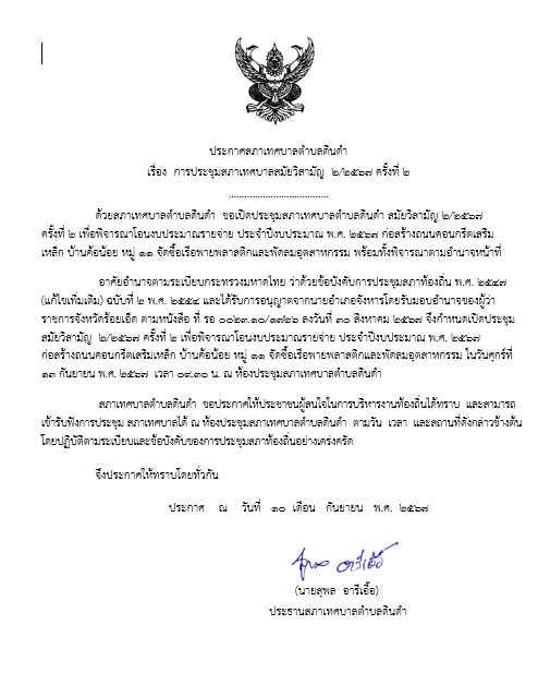 ประกาศสภาเทศบาลตำบลดินดำ (ดู 997) |