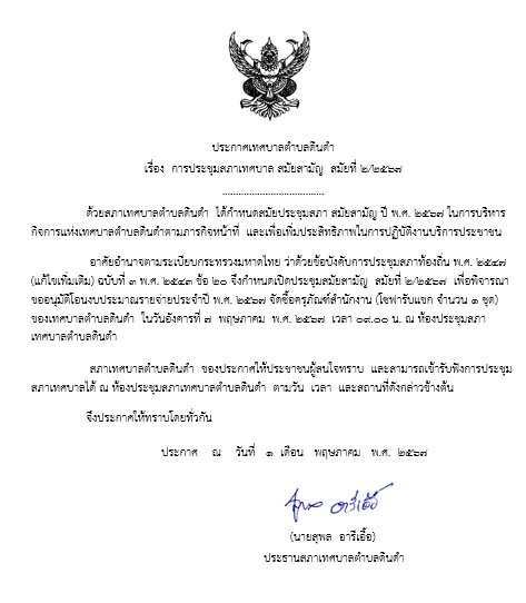 ประกาศสภาเทสบาลตำบลดินดำ (ดู 823) | |
