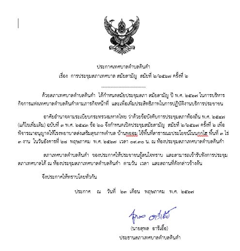 ประกาศสภาเทศบาลตำบลดินดำ (ดู 998) |