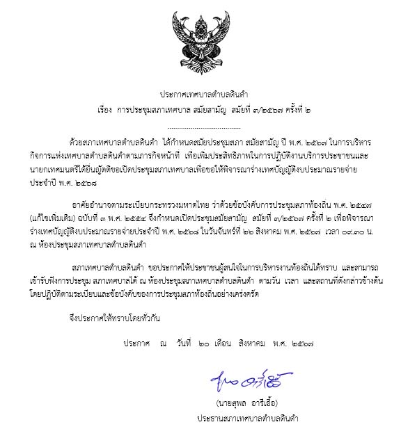 ประกาศสภาเทสบาลตำบลดินดำ (ดู 823) | |