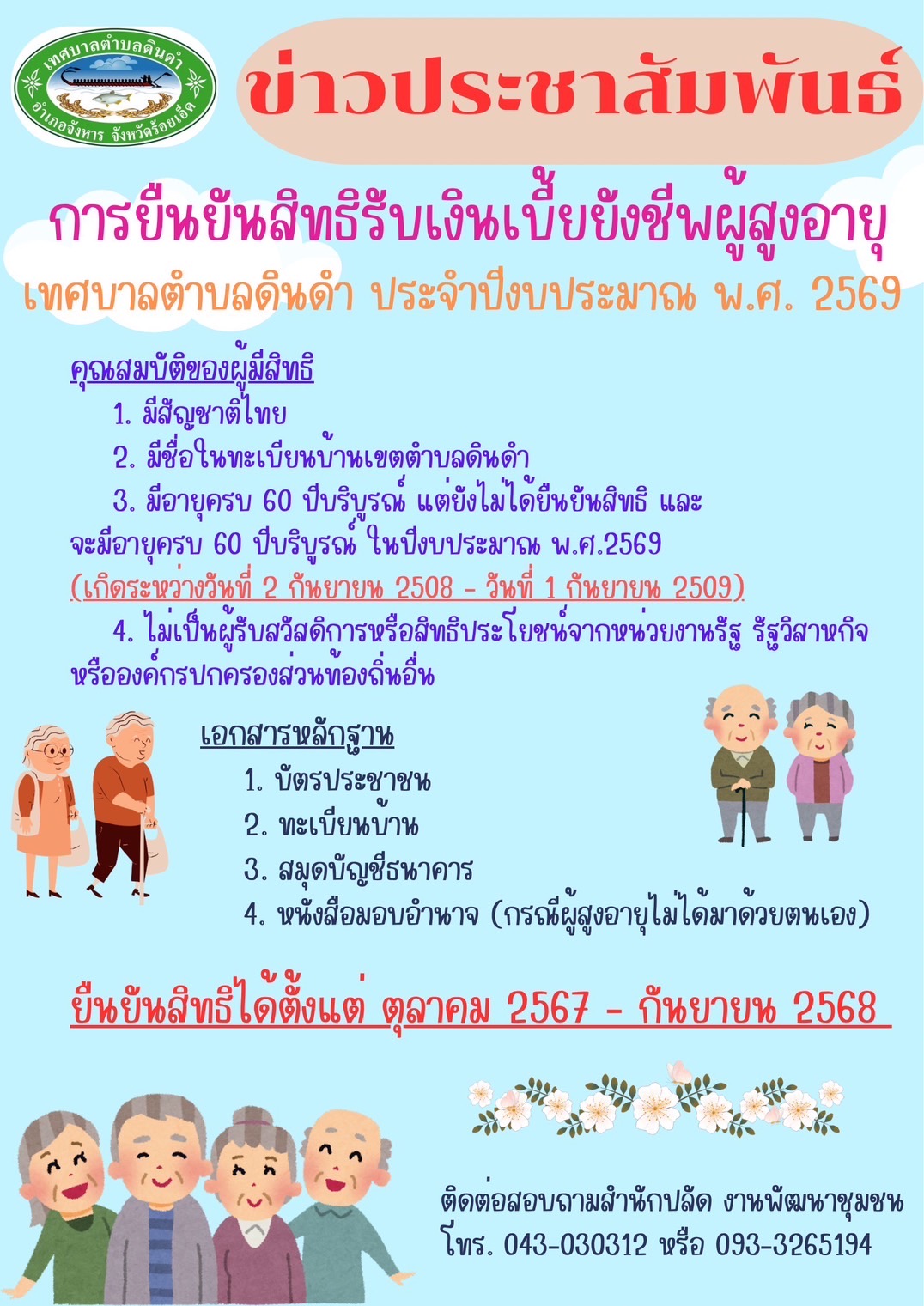หัวข้อ :: ประชาสัมพันธ์การยืนยันสิทธิขอรับเงินเบี้ยยังชีพผู้สูงอายุ ประจำปีงบประมาณ พ.ศ. 2569